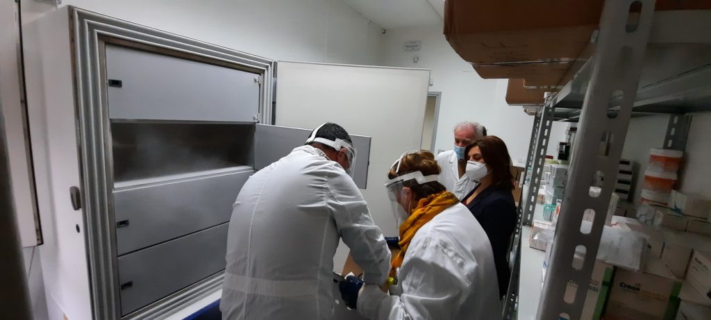 Questa mattina è arrivata la prima fornitura di 195 flaconi di vaccino anti-Covid 19 presso il P.O. “Frangipane”, individuato come hub per la distribuzione.