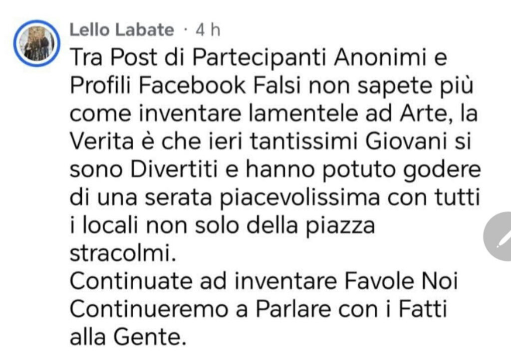 Non sono mancate polemiche, che da usuale chiacchiericcio da piazza social dei nostri tempi, hanno addirittura scatenato uno scontro politico tra l’assessore Lello Labate e il consigliere di ABC Roberto Renzulli con promessa di un confronto nel primo consiglio comunale da fissare dopo le ferie agostane.