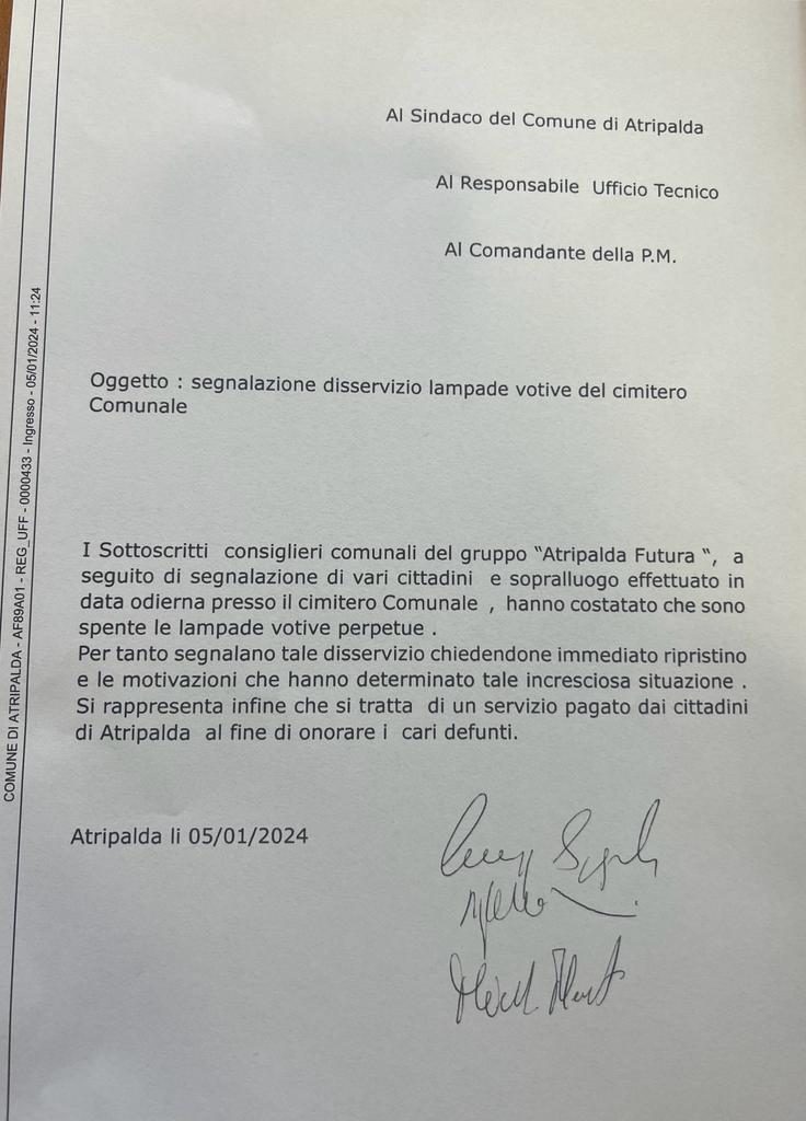Atripalda Futura: “tutte spente le lampade votive al Cimitero di Atripalda.