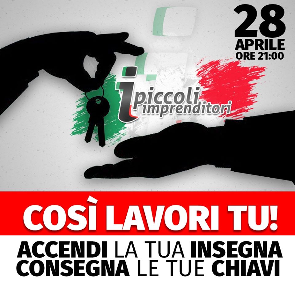 I piccoli imprenditori, aderiscono alla protesta pacifica della categoria che si effettuerà Martedì 28 Aprile alle ore 21:00 accendendo le proprie insegne e le luci dei locali.