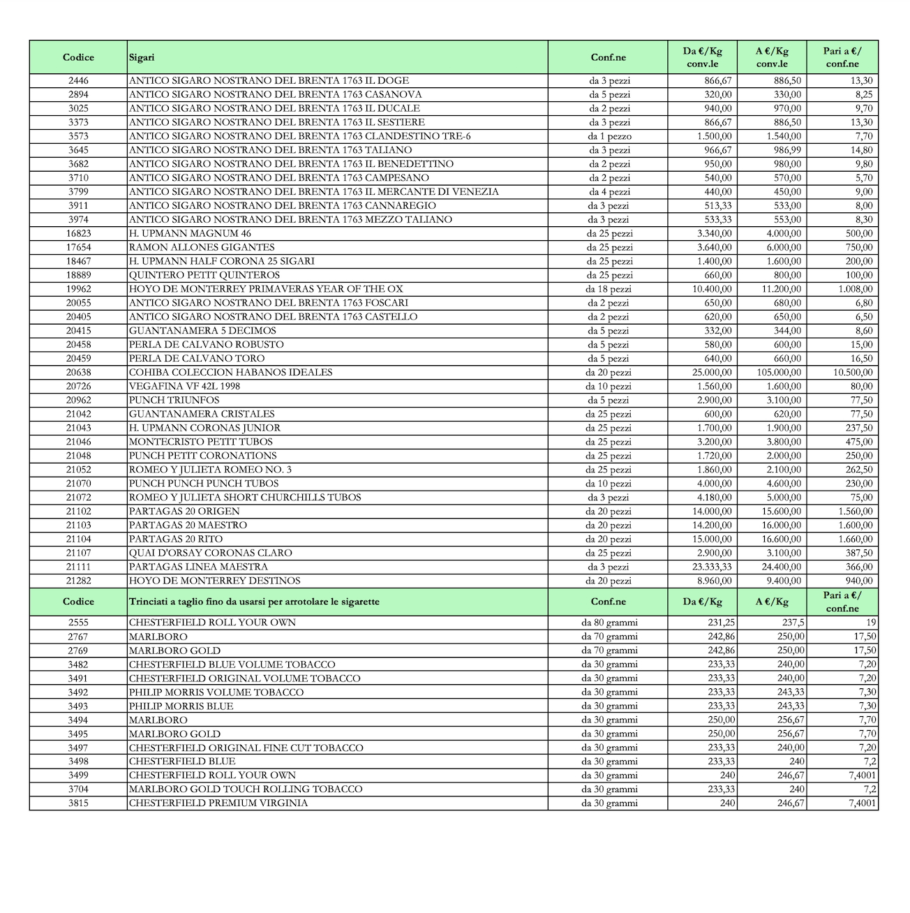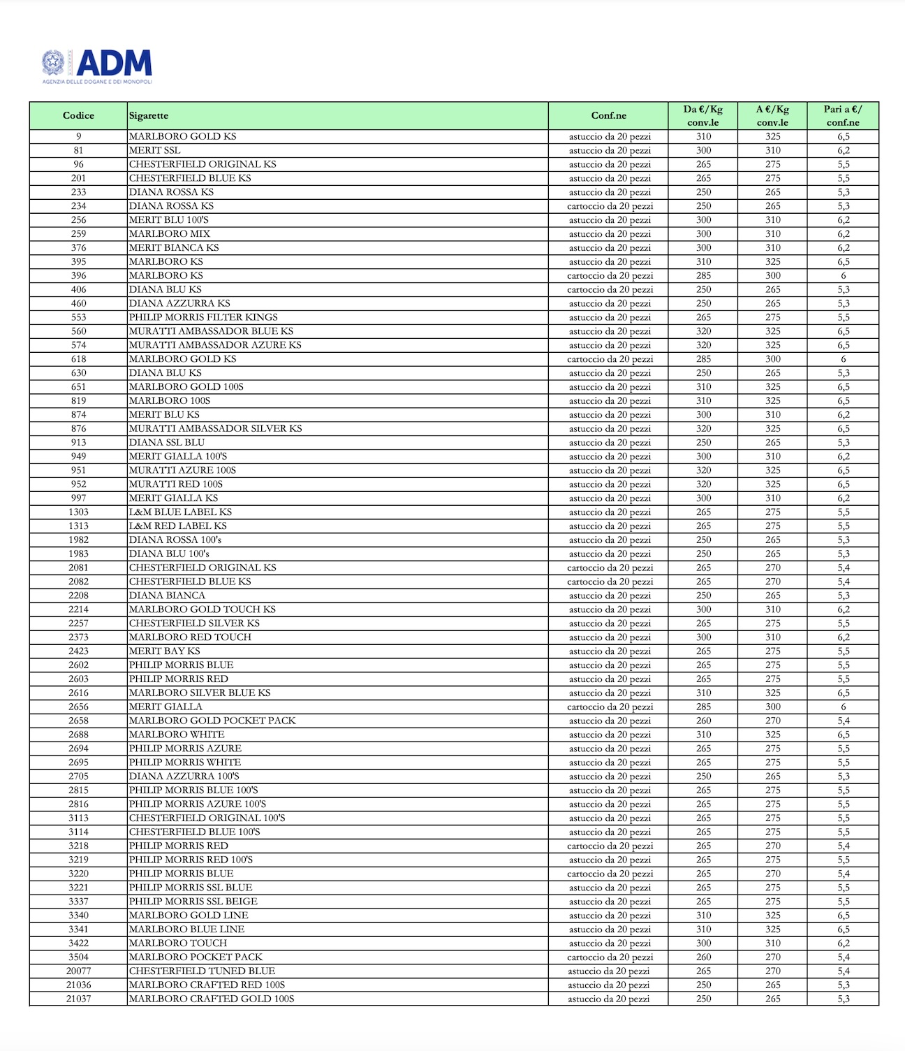 L’Agenzia delle Dogane e dei Monopoli ha pubblicato sul proprio sito l’elenco dei prodotti interessati con le relative variazioni di costo.