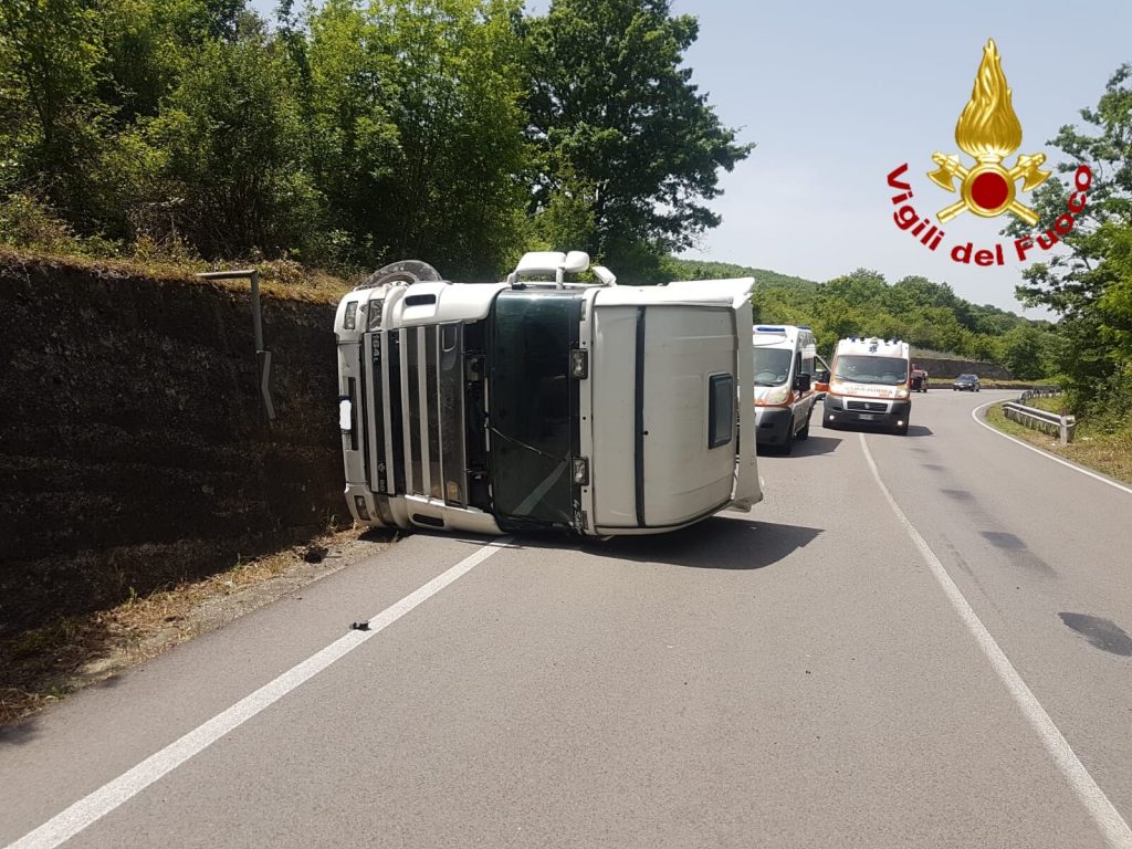 Intorno alle ore 13.00 di oggi, la squadra dei Vigili del Fuoco del distaccamento di Lioni, è  intervenuta sulla SS 7 Ofantina, nel territorio del comune di Conza Della Campania, per un incidente stradale che ha visto coinvolta una motrice che si è ribaltata sulla sede stradale. Il conducente, un uomo di 62 anni originario di Ravello, è rimasto.I sanitari del 118 arrivati sul posto hanno trasportato il malcapitato presso l’ospedale di Sant’Angelo Dei Lombardi per essere sottoposto alle cure mediche.