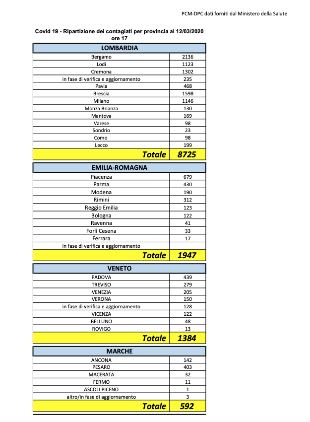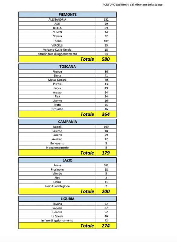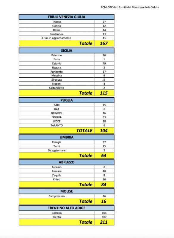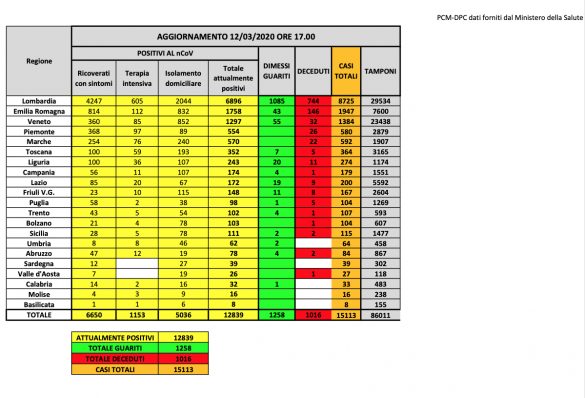 I deceduti sono 1.016, questo numero, però, potrà essere confermato solo dopo che l’Istituto Superiore di Sanità avrà stabilito la causa effettiva del decesso.