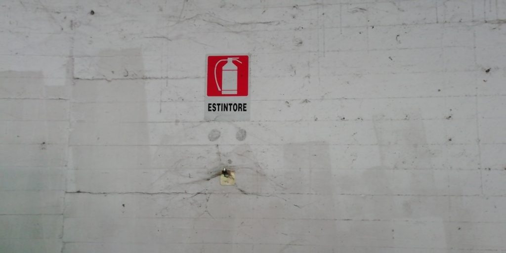Delle sei postazioni di estintori presenti, rimangono solo i ganci e le placche, il resto è completamente sparito.