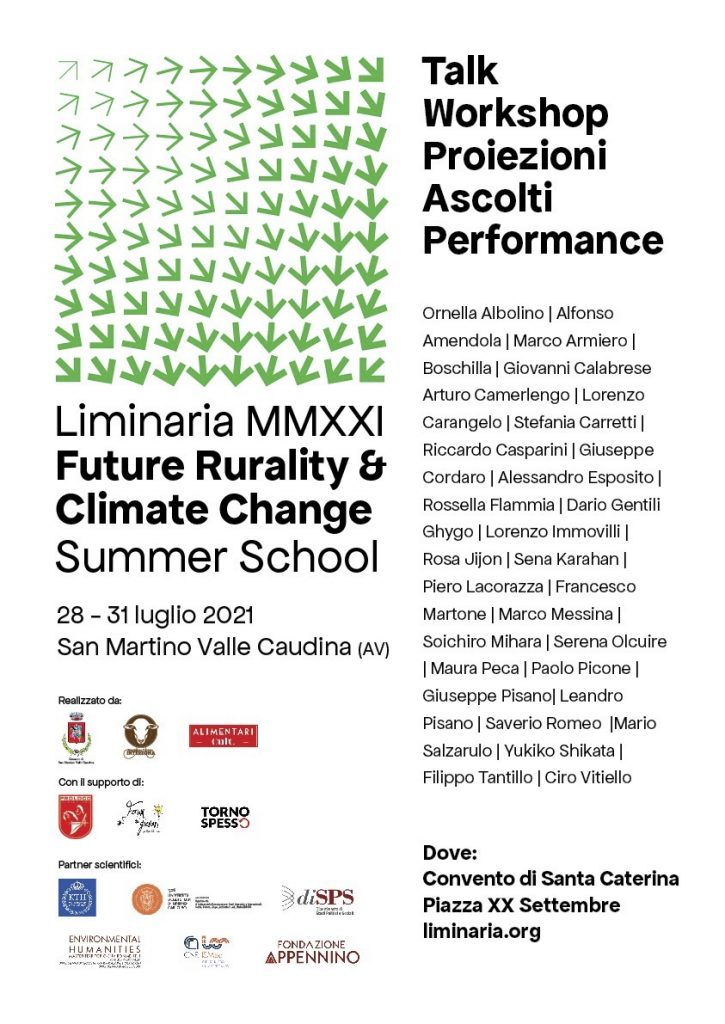 Dopo la tre giorni dedicata agli studenti selezionati dalla scuola, sabato a partire dalle ore 9:30 nel Convento di Santa Caterina, Leandro Pisano, curatore della scuola insieme a Serena Olcuire, presenterĂ  con Yukiko Shikata e Aya Murakami, il progetto EIR (Energies In the Rural), che attraverso la sperimentazione di arti sonore e nuove tecnologie, mette a confronto l’area rurale del Fortore beneventano con la prefettura di Aomori in Giappone, facendo emergere l’impatto che lo sfruttamento dell’energia sul territorio ha avuto nei cambiamenti dei territori rurali e delle rispettive comunitĂ .